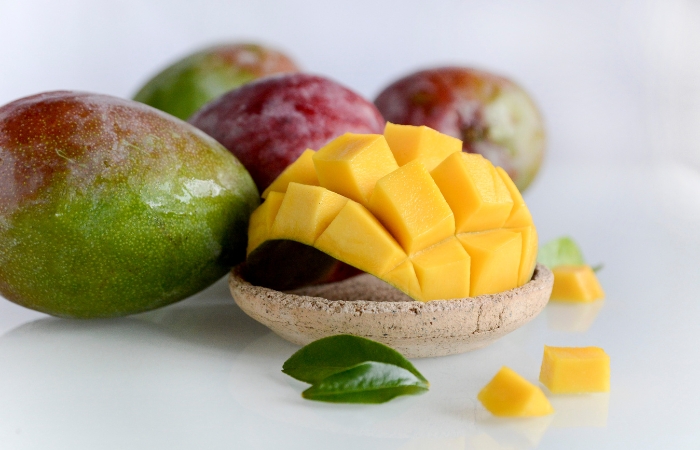 Коробка содержит 5 кг органического манго. Это тропический фрукт вытянутой формы. Шкурка может быть полностью зелёной, жёлтой, тёмно-красной или сочетанием этих цветов. Мякоть жёлто-оранжевая, плотная, сочная и ароматная, с небольшим количеством волокон или без них. Косточка плоская и достаточно твёрдая, сросшаяся с мякотью. В зависимости от сорта сбор урожая начинается в июле и заканчивается в ноябре.