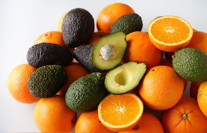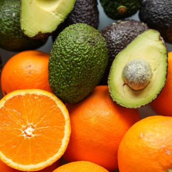 Kaste satur organisko avokado Hass maisiņu 2 kg, bet pārpalikušu vietu aizpildīja organiskie apelsīni Lane Late 9,5 kg.